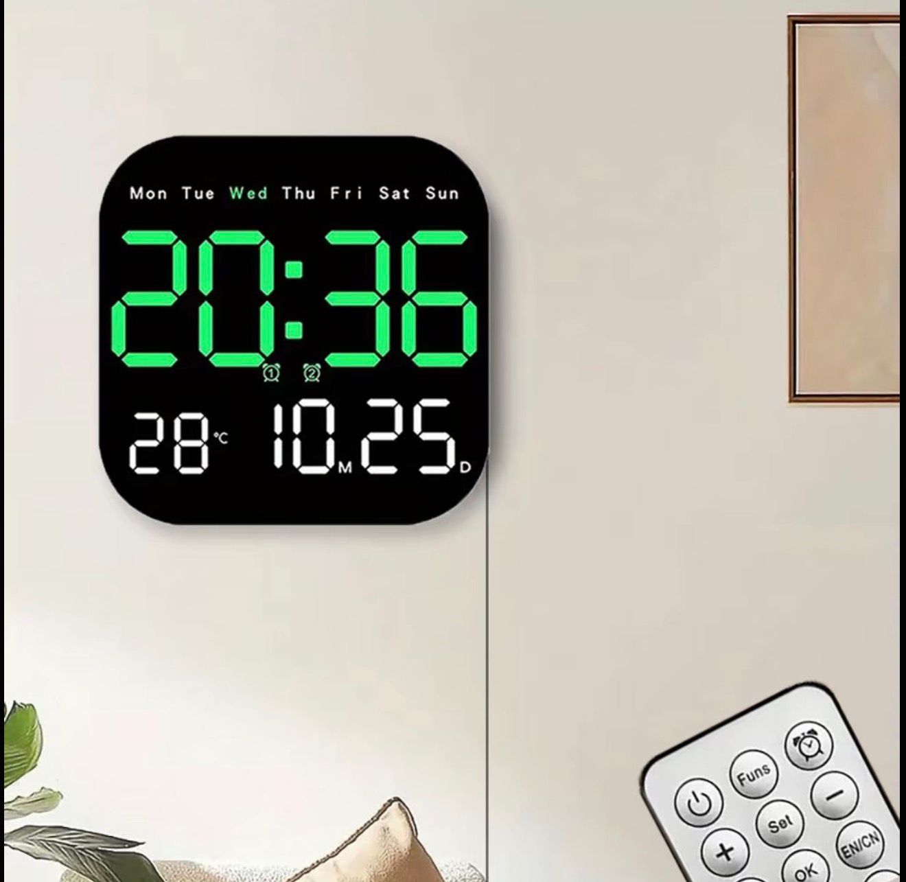 The TimeMax™ Smart Wall Clock features a large, ultra-clear LED display with time, date, and temperature all in one place.